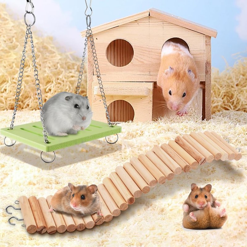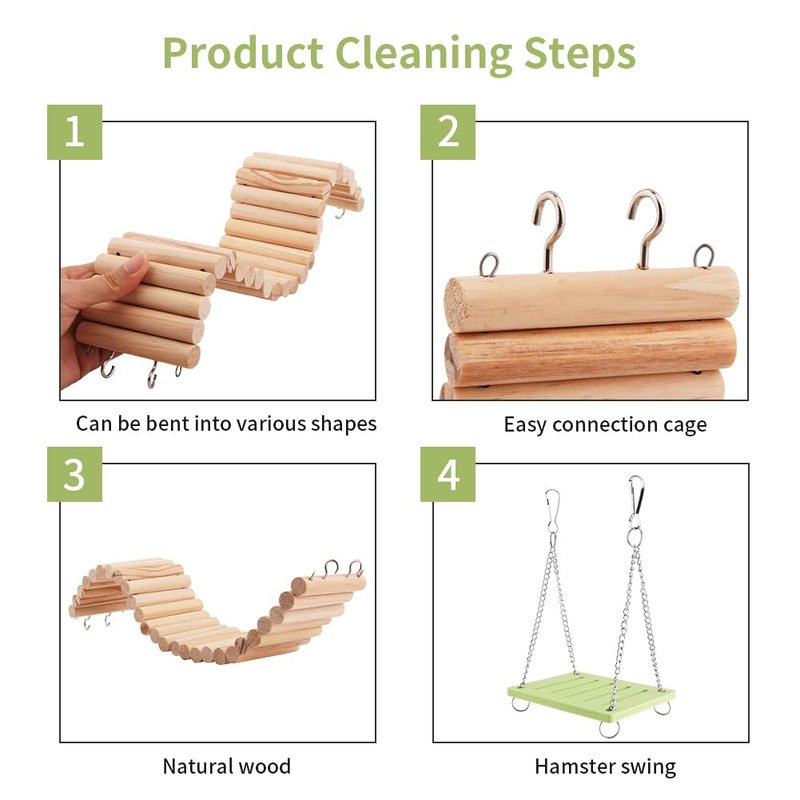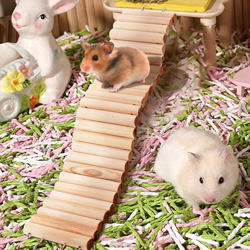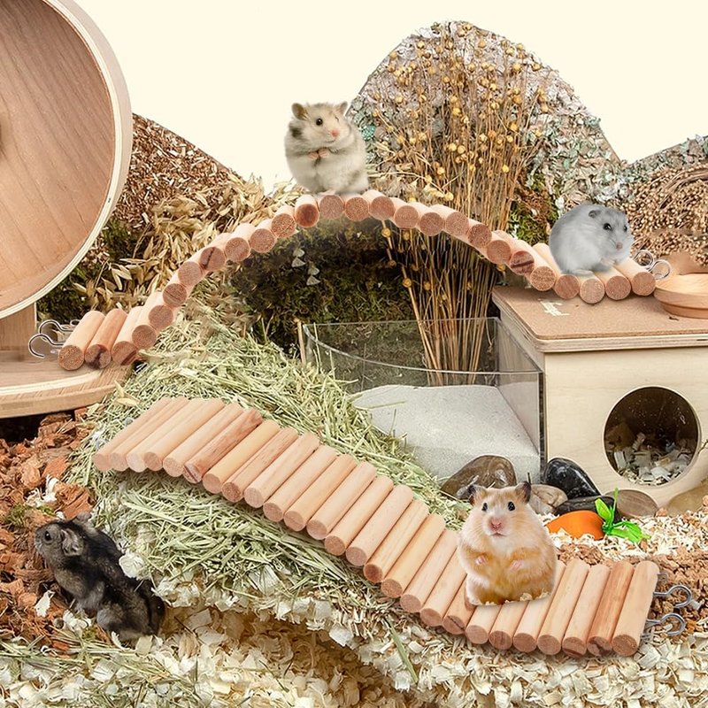 - 【SAFE MATERIAL】The wooden ladder bridge toy is made of natural wood, environmentally friendly and durable, bite-resistant, and very suitable for hamsters rats birds to climb, play and jump,wear- resistant, bite- resistant, this hamster platform not easy to deform.