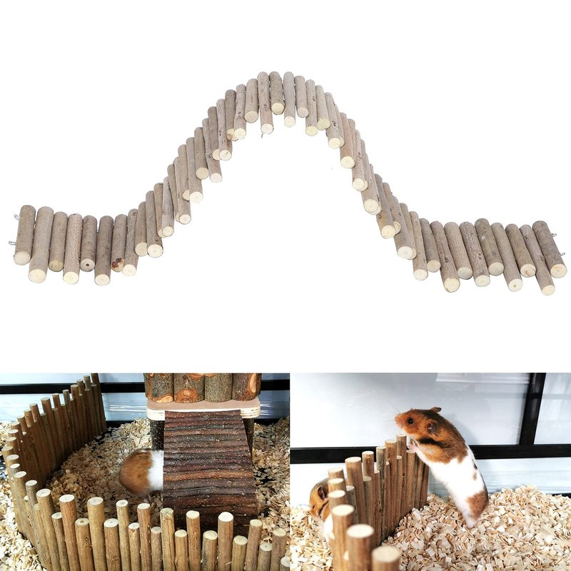 Hamster Toys, Flexible Hamster Wooden Bridge Door Fence Hamster Chew Toys Decor Standing Climbing for Mice Gerbil Chinchilla Small Animals Chew Toys(11.8in)