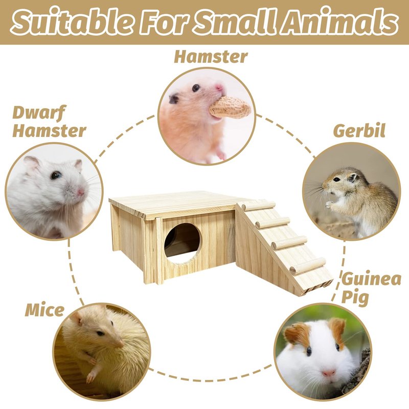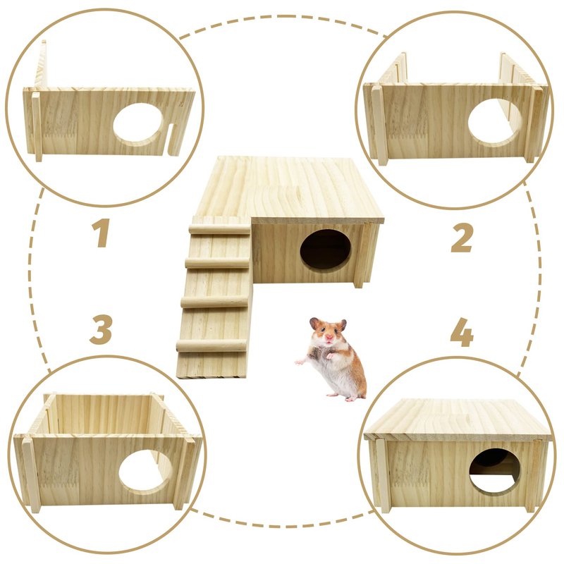 Size: Hamster wooden house size is 7.9 * 7.9 * 3.7 inches (L *W * H)