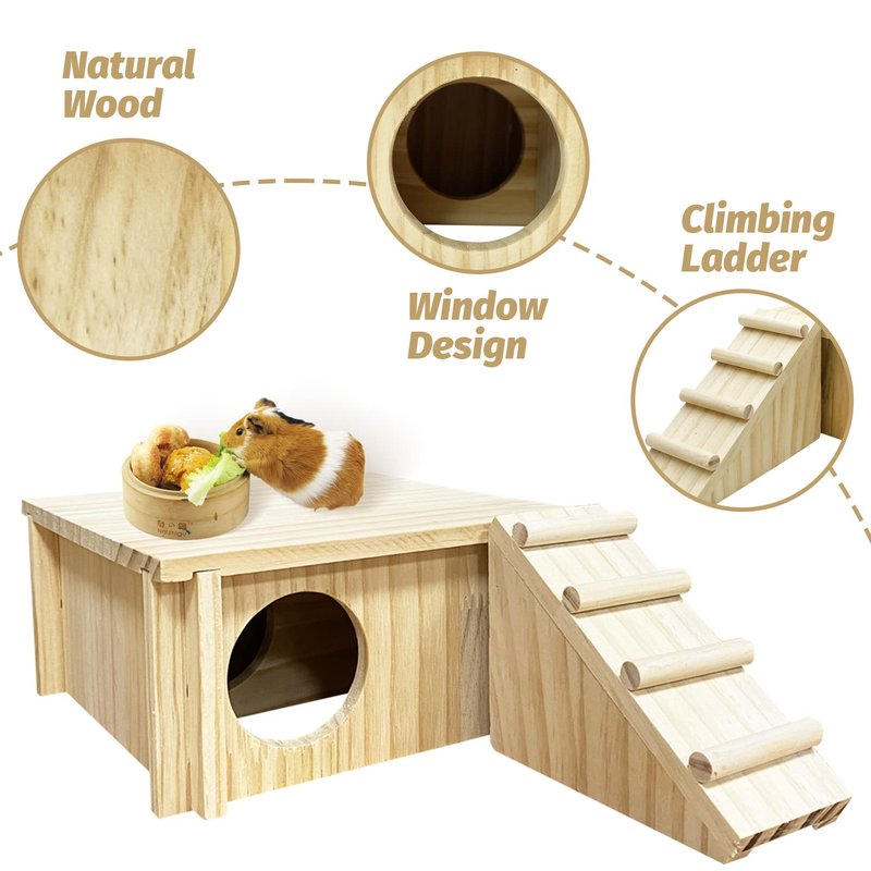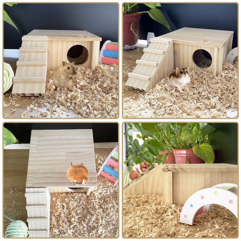 - High quality materials: Hamster wooden house is made of natural solid wood. The wood is moderately soft and hard,it is hard and durable and bite resistant ,your pet will not be hurt,and ensure the safety of pet. Let your pet enjoy the life of nature and logs and provide a sense of natural security.