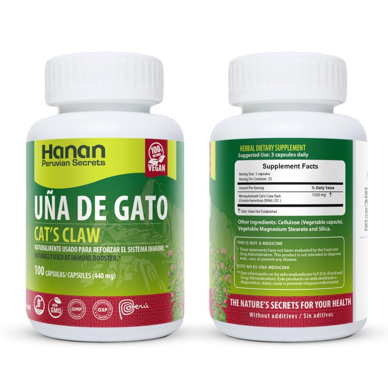 Hanan UΓ±a de Gato Cat's Claw | 100 Capsules | Naturally Aids in Supporting Healthy Immune System