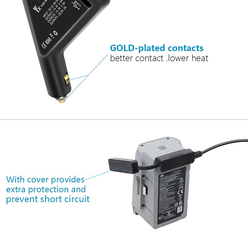 - 【Charging Time】Approx.100 minutes to charge 2 batteries fully at the same time.includes two intelligent battery charging ports and one USB charging port. Dual battery charging ports allows simultaneously parallel charging of two mavic air 2 batteries