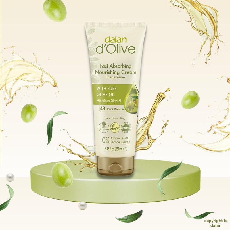 - Dalan d’Olive Nourishing cream nourishes and revitalizes your skin with its formula containing natural olive oil and glycerin.