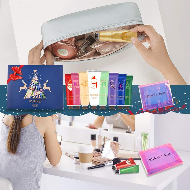 Hand Cream Gift Set,8 Pack Travel Size Nourishing Hand Cream Set with Natural Shea and Vitamin E+Cosmetic bag, Moisturizing & Hydrating for Dry Hands, Ideal Gift for Women/Men/Birthday
