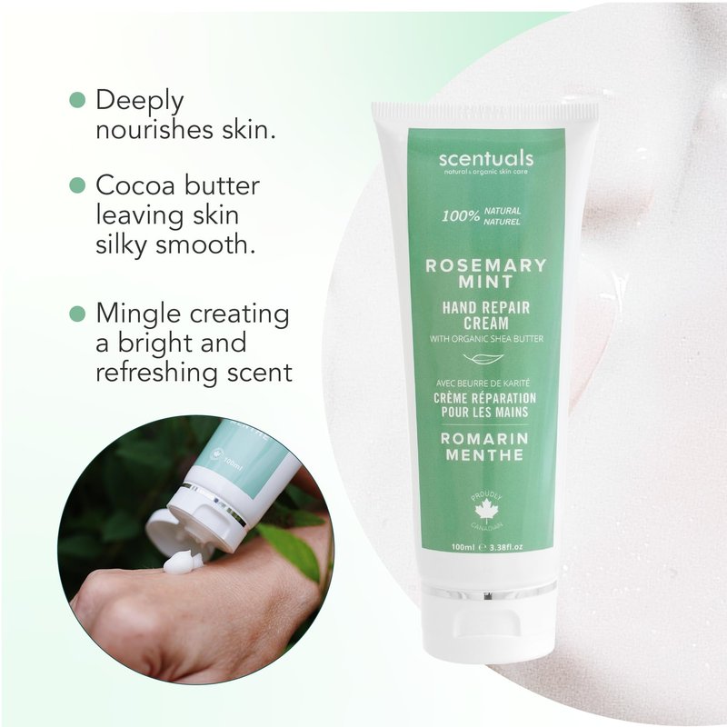 - ROSEMARY MINT ESSENCE: Indulge in the refreshing and invigorating essence of rosemary and mint with every application of Scentuals Rosemary Mint Hand Repair Cream. Experience an uplifting aroma that revitalizes your senses during your hand care routine.