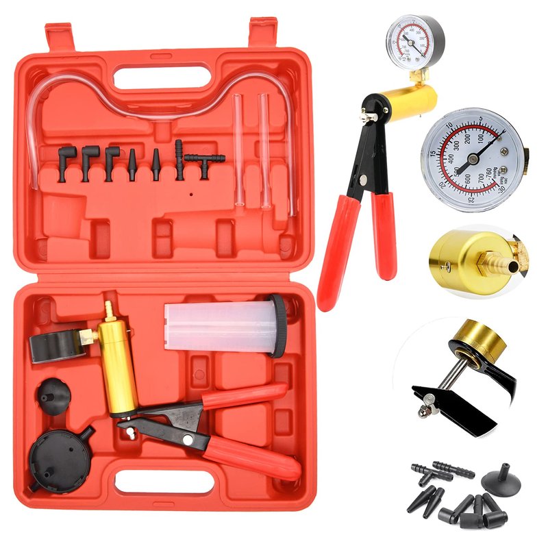 - Type:Automotive Brake Vacuum bleeder Kit;Multifunctional: The Vacuum Pump/Brake Bleeder is a multi-functional vacuum pump that is used to test a variety of essential vehicle settings and operations.Easy Usage: Hand vacuum pump is easy to bleed your car brakes.