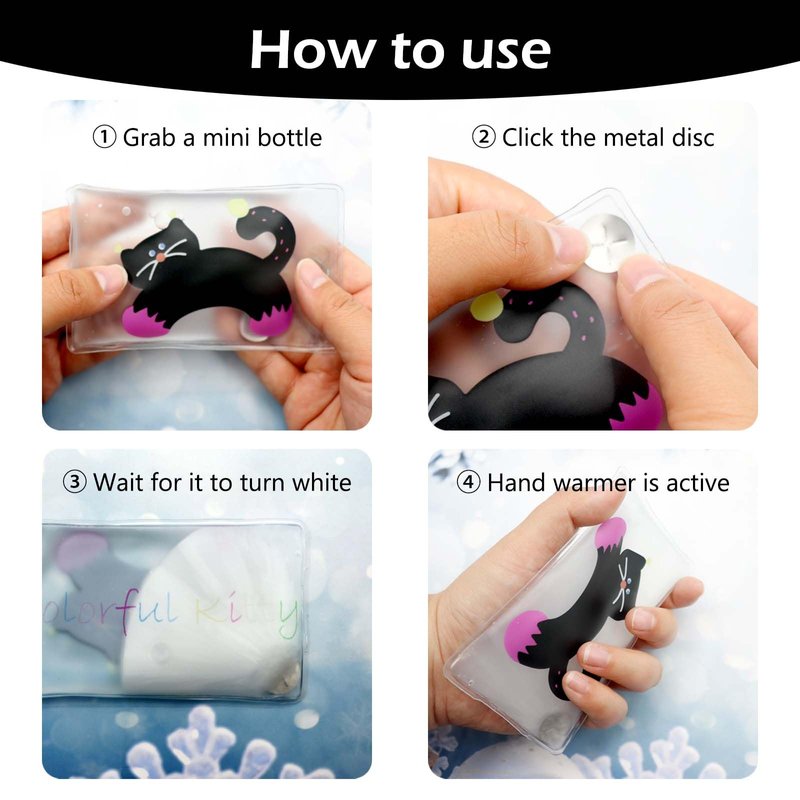 ① Our instant hand warmers are easy to use, portable, and perfect therapy (thermotherapy) for ailments like arthritis, chronic pain, or injuries lasting more than 24 hours. Great as a pocket warmer to get heat to your hands or ears during winter or cold weather conditions, skiing, snowboarding, winter sports, and working outside. Helps reduce the discomfort of menstrual cramps and stiff joints; pain in the lower back, knees and elbows; rotator cuff injuries, backaches, etc. Use as a hot stone massage alternative. Place in a heat wrap for your body parts requiring a therapeutic heat treatment. ② Stay cozy and warm with the 4 Pack Magic Hand Warmers by COZEOA. These reusable snap heat packs are perfect for outdoor activities such as camping, making them an ideal companion for your next adventure. The hand warmers are designed to be portable and easy to use, allowing you to keep warm anytime, anywhere. The hand warmers are available in an unspecified size, making them suitable for all. Experience the comfort and warmth of these magic hand warmers and make your outdoor experiences more enjoyable. ③ Our reusable heat packs are perfect for warming your hands, fingers, feet, toes, ears or any body part that needs heat therapy, or when needing a hot pack in a cold environment. Using a pack is easy and convenience. Simply click or “snap” the internal metal disc to start the heating pad. In just seconds you’ll have a hot heat pack.