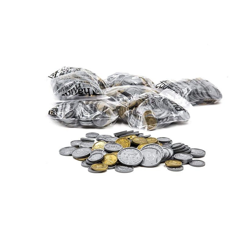 - MONEY MANIPULATIVES FOR CLASSROOM: Incorporate hands-on learning while teaching students about money. This set includes 500 plastic coins: 100 pennies, 100 nickels, 100 dimes, 100 quarters, 50 half-dollars, and 50 Sacagawea dollar coins.