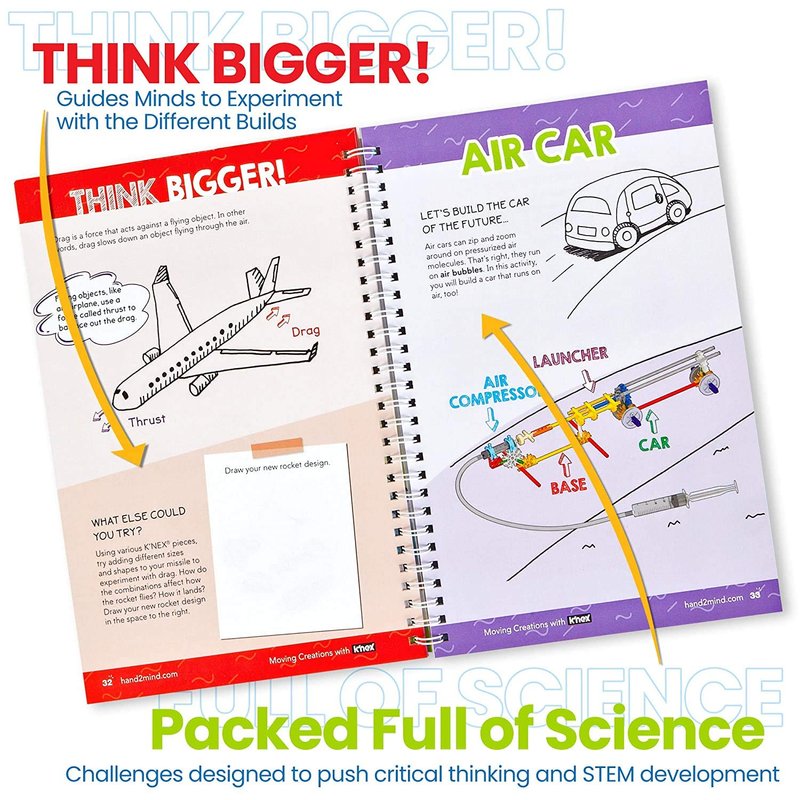 - SCREEN FREE FUN: The elaborate STEM book walks young scientists through 9 builds using K'NEX, 18 STEM experiments using their builds, plus many fun facts about the world around them.