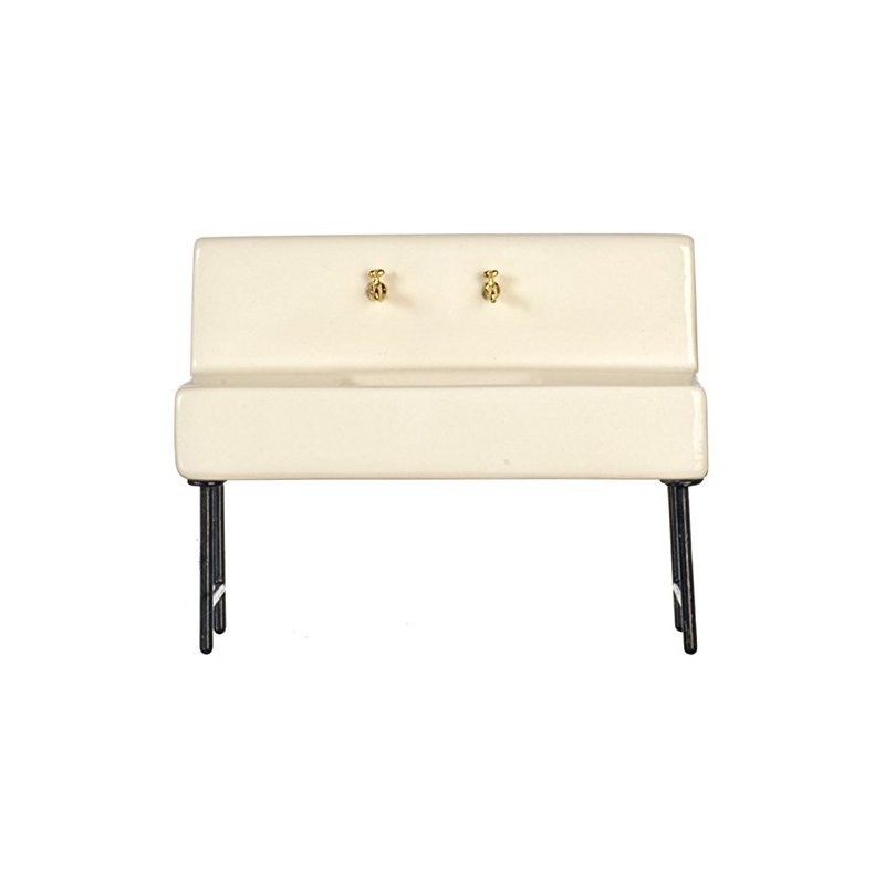 Vintage Look Retro Ceramic Sink designed for the 1:12 scale setting by Handley House. Made of ceramic and metal. There are tiny grooves on the top of the sink just like the real thing!!! For your mini dishes to drain. Measures 3 3/4 inches tall x 4 3/4 inches wide x 1 3/8 inches deep.