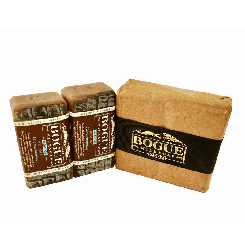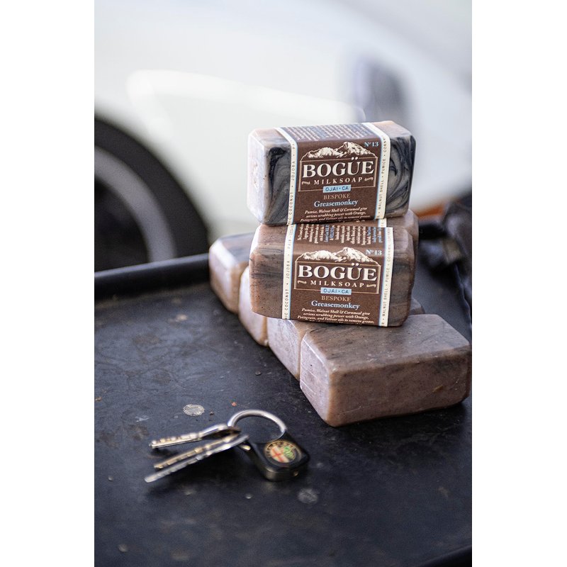 A hard working soap with 3 exfoliants, fine pumice to get in under the nails, ground walnut shell to scrub off grease and dirt, and cornmeal to remove odors. Essential oils of Petitgrain and Vetitver help remove lift grease and dirt while also soothing cut and abrasions making No.13 the ultimate mechanic or any greasemonkey soap. Bogue Milk Soaps are made with all-natural plant based oils and goat milk, with only pure essential oils, infused oils and herbs for scent and skin nourishment. There are no artificial additives, preservatives, dyes or fragrances. Goat milk has long been known for its moisturizing qualities an emollient that soothes your skin, together with our unique blend of oils, produces a creamy, luxurious lather not found in other soaps.