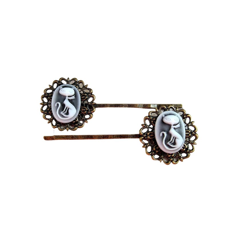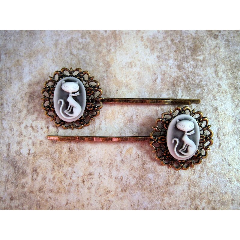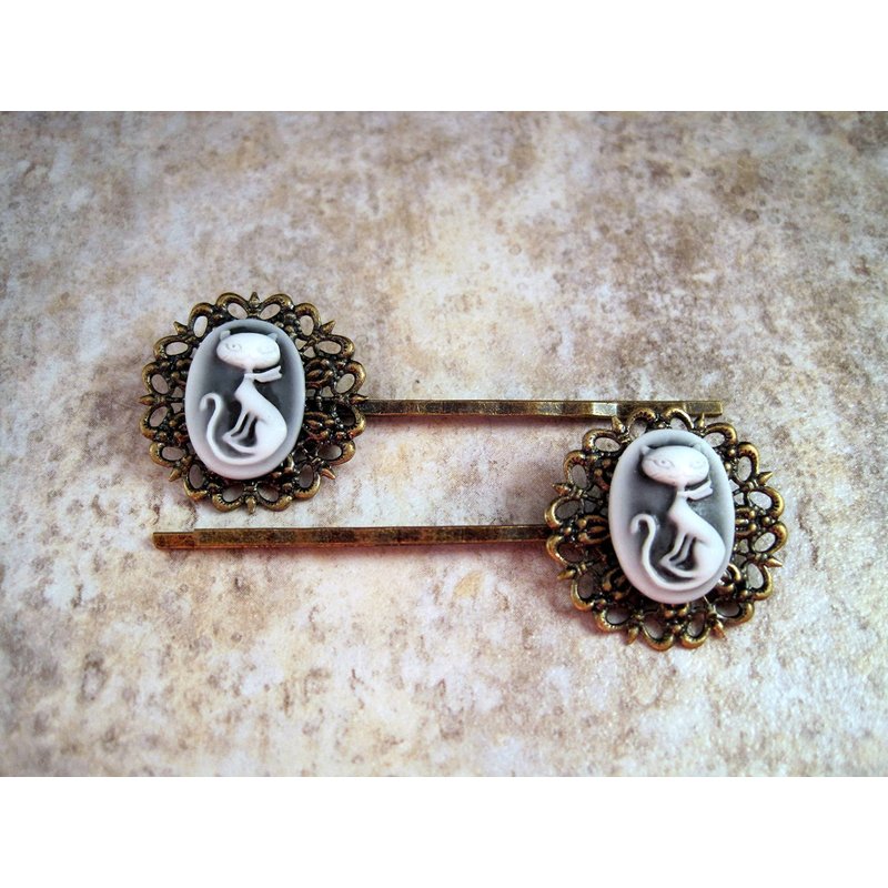 Handmade Retro Kitty Cameo Hair Bobby Pins