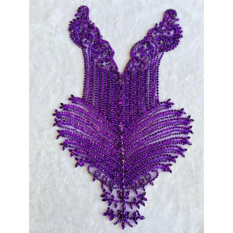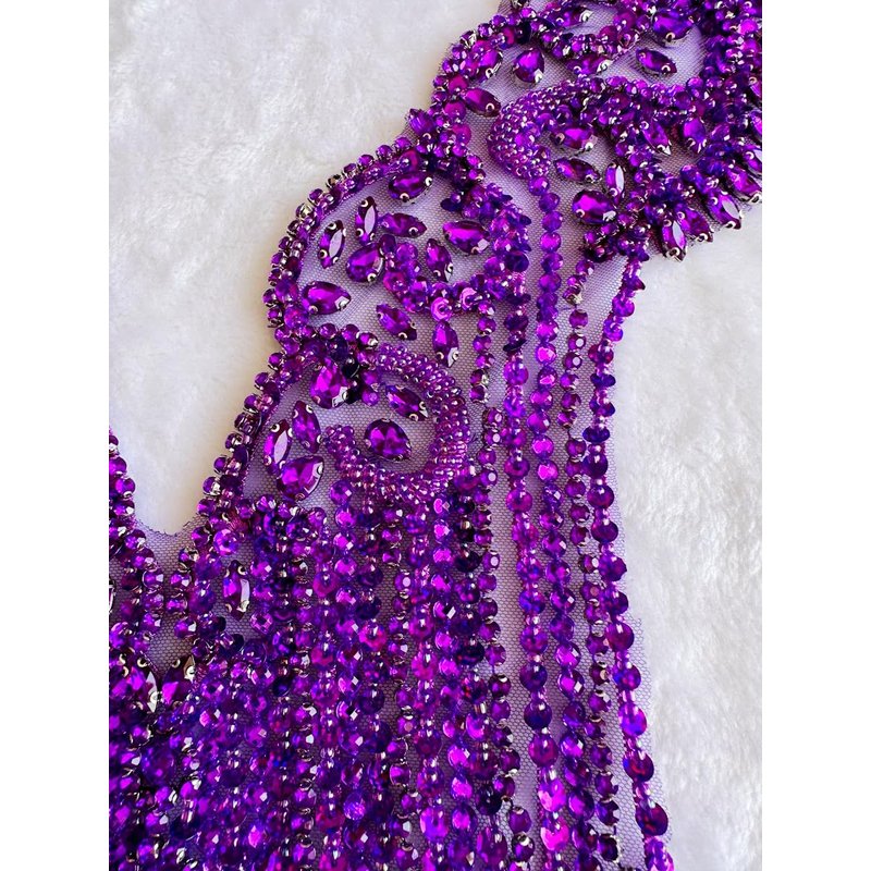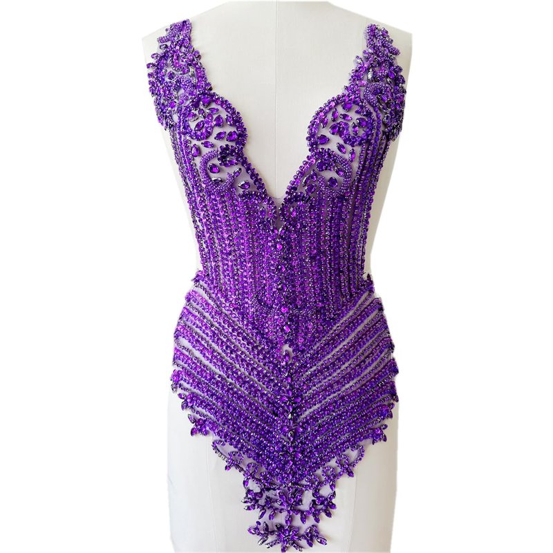 Handmade Stones Beads Bling Bright Crystal Patches Sew on Rhinestones Bodice lace Applique Accessories for Weding Dress Decorations (Purple)