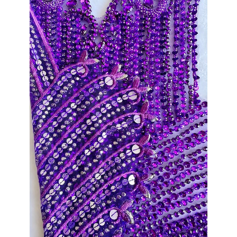Material:Glass beads,glass and acrylic rhinestons.polyester embroidery.Hand-made beading.It is hard work,
