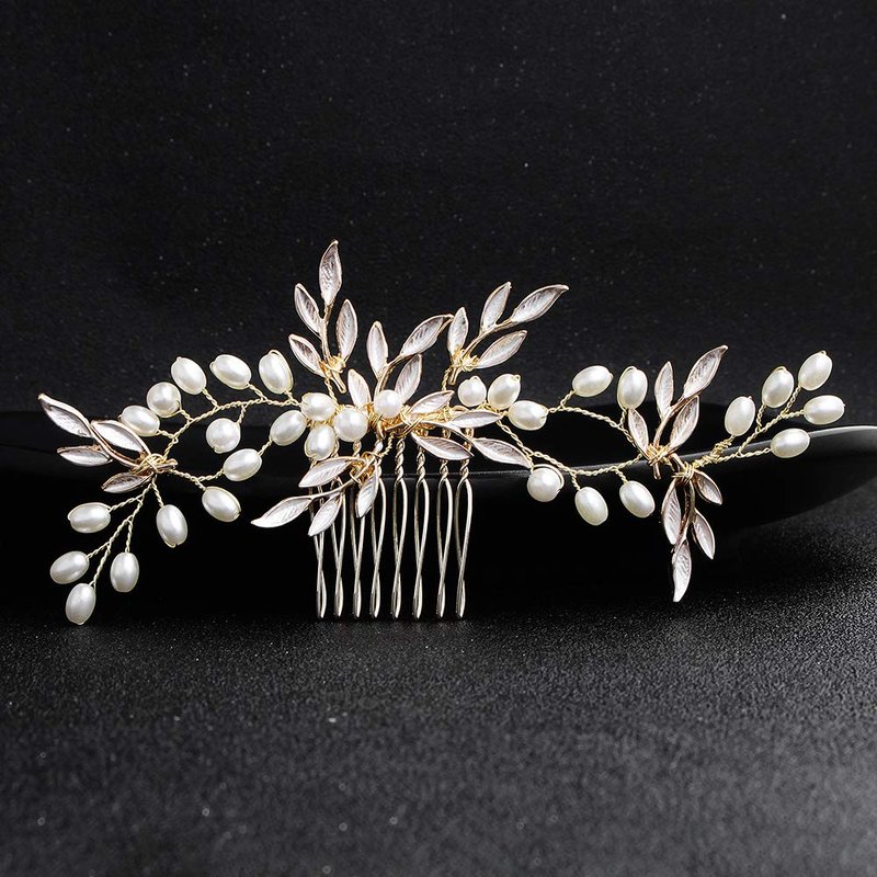 Handmade Tiara Wedding Hair Comb Leaf Bridal Headpiece Pearl Rhinestone Head Jewelry Wedding Hair Accessories