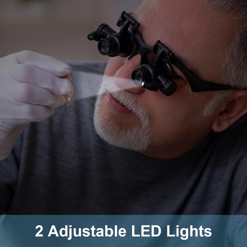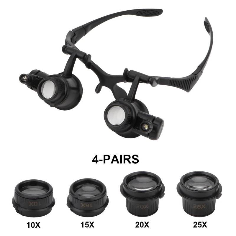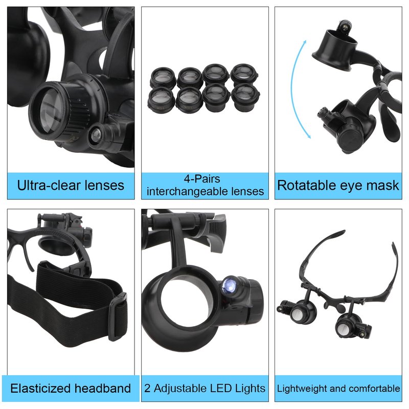 - 4 different magnifications can be quickly interchanged. The magnifying glass on the headband is very light and you won't feel burden or discomfort.