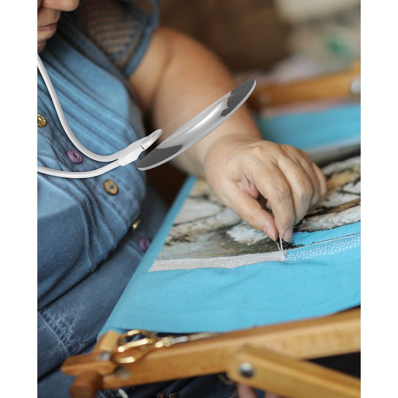 Hands Free Magnifying Glass for Neck Wear,Magnifying Glass for Reading, Sewing, Cross Stitch, Inspection, Repair.(White)