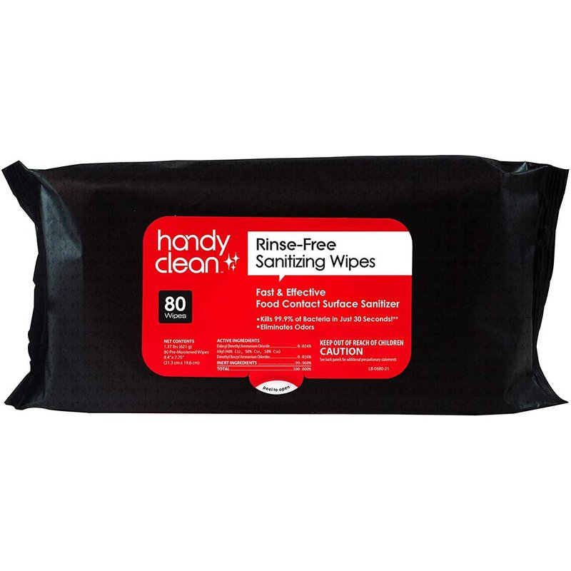 - RINSE FREE SURFACE CLEANER WIPES - Our HandyClean sanitizing wipes help keep any surface in the kitchen, restaurant, home, or school sanitized. Effectively fight germs in your household or anywhere you go in just 30 seconds.