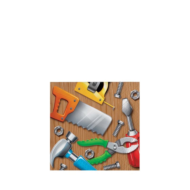 Handyman Party Beverage Napkins. One package of 16 Handyman 2-Ply Paper Beverage Napkins. Each napkin measures 5 inches square folded, 10 inches unfolded.
