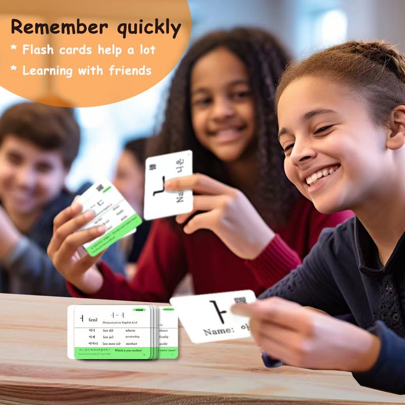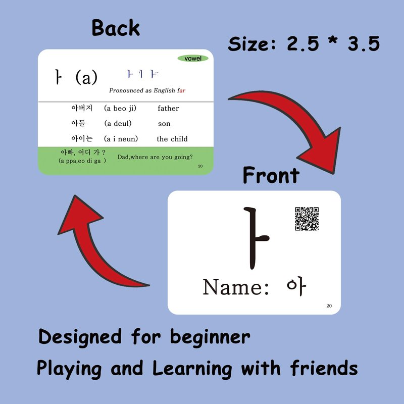 - [Easy to Remember]: Our aim is to simplify the complex beginning of Korean alphabet learning, we just provide the basic and simple information, play our flash cards with friends and Korean alphabet learning become so easy.