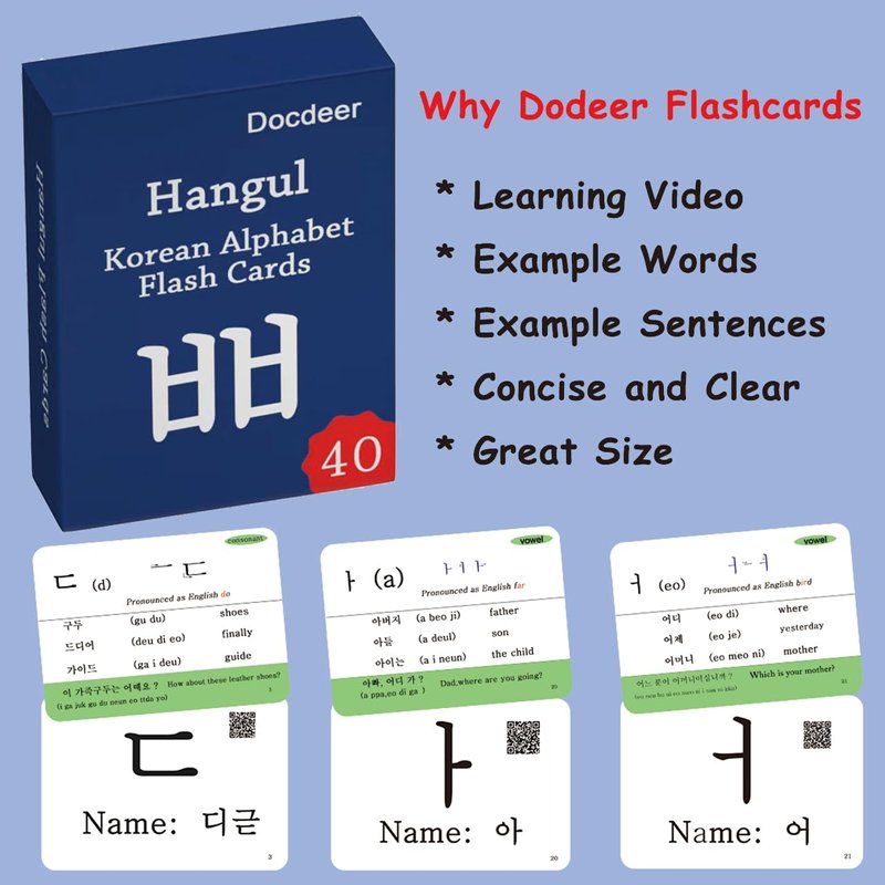 - [40 Videos with Pure Pronunciation]: One Korean syllabary flash card has one video, Scan the QR code of Korean flash card and get the video, they are all free for you.