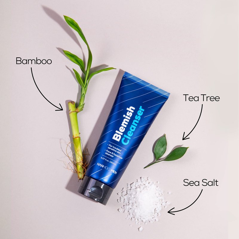 HANHOO Men’s Blemish Cleanser and Moisturizer | Daily Beard and Face Wash with Bamboo and Probiotics 5.07 fl.oz. | Daily Facial Moisturizer with Bamboo and Green Tea 2.02 fl.oz.