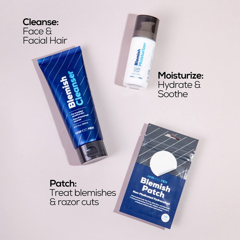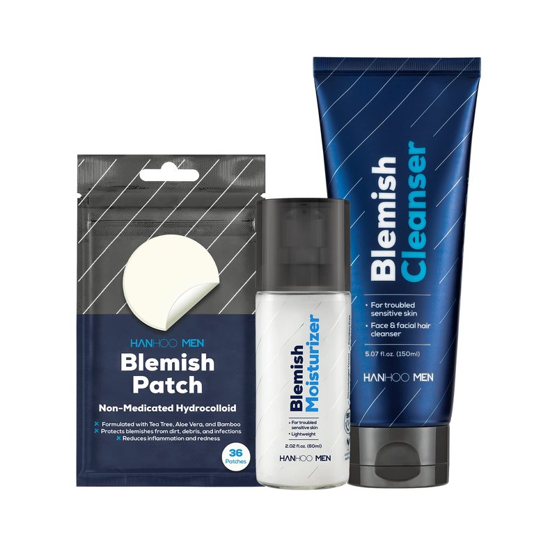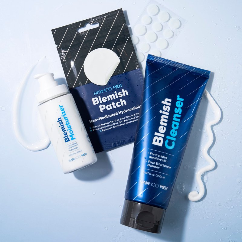 The Hanhoo's Men's line a bundle that includes a daily facial cleanser, moisturizer, and patches for spot treatment.