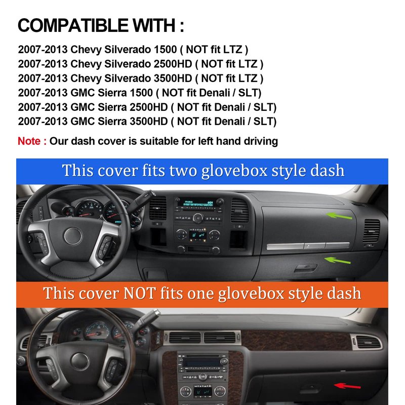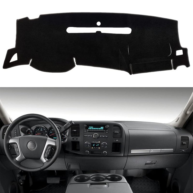 HanLanKa Dashboard Cover for GMC Sierra and Chevrolet Silverado- Fits 2007-2013 Models with Two Glove Boxes. Custom Fit Dash Mat, Won't Break Dash Sensors(Premium Carpet, Black)