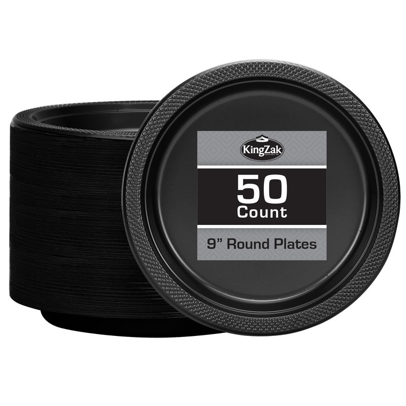 - PACKAGE INCLUDES: 50 Black Round Plastic Plates - 9"