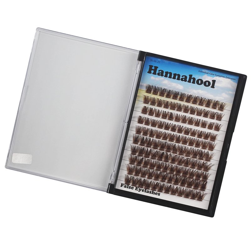Hannahool 120pcs D Curl Individual Wide Stem Brown Cluster DIY Eye Lashes Extensions Mixed 12-14mm/14-16mm/16-18mm Makeup Dramatic Volume Lashes (Brown-14-16mm)