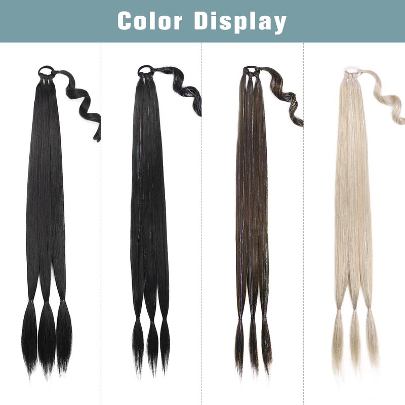 Material:Japanese synthetic fiber hair, Soft and light to Wear, Tinsel ponytail glitter hair extensions for women.