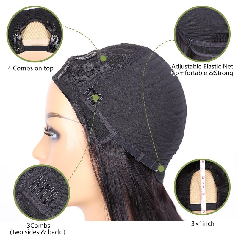 Cap Type: U-Shape Wigs Have 4 Combs on Top and 3 Combs on Back, Left, Right, Can Fix Hair Wig Well.
