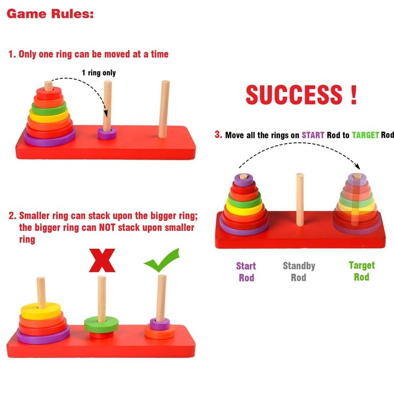 - COORDINATION & FLEXIBILITY: The Tower of Hanoi can develop kids' logic and mathematical abilities, cultivate baby's eye-hand coordination ability, train baby fingers muscle flexibility.