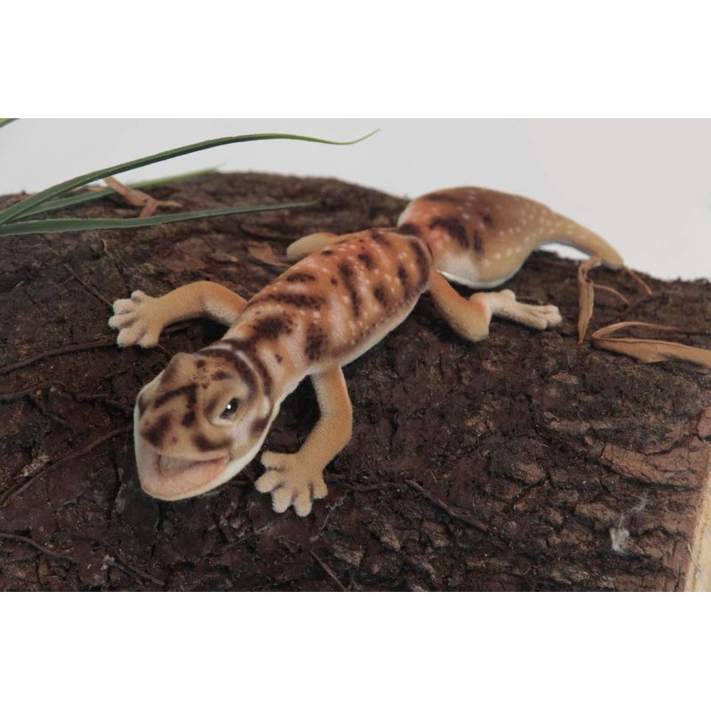 The Gecko Finger Puppets are colorful plush lizards meant to stimulate the bright imaginations of children. These puppets are the perfect size to fit on kids' little fingers, and are vivid and posable for all kinds of role play fun. Each gecko is super soft and feature patterns of real gecko species: brown is the Beige Knob-Tailed Gecko, tan is the Pibora Smooth Knob-Tailed Gecko, yellow is the Carrot-Tailed Leopard Gecko, and green is the Green Knob-Tailed Gecko. Each superior quality Hansa gecko puppet is crafted to last for years of imaginative play and make the perfect gift for young reptile enthusiasts. Spot clean. For ages 3 and up.Size: 10"L. Color: Tan.