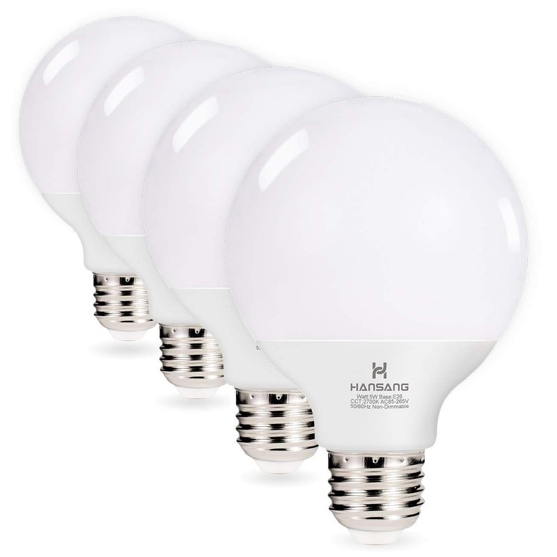 hansang G25 LED Vanity Light Bulb 5W (60W Incandescent Equivalent) 2700K Soft White,Decorative Globe Light Bulbs,E26 Base,500LM Perfect for Bathroom/Vanity Makeup Mirror,Non-Dimmable,4 Pack