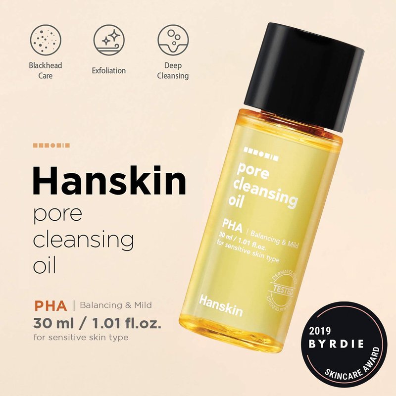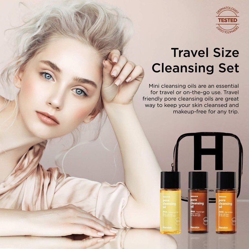 Hanskin PHA/BHA/AHA Pore Cleansing Oil, Sample Trial Size, Travel Size Mini Makeup Remover Set, Gentle Blackhead Cleanser for Sensitive, Combination, Oily and Dry Skin [30 ml/Pack of 3]