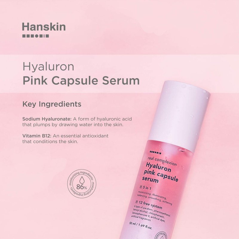 Hanskin Real Complexion Hyaluron Pink Capsule Serum with Vitamin B12, Intensive Moisture Deep Hydration, Hyaluronic Acid [50ml]