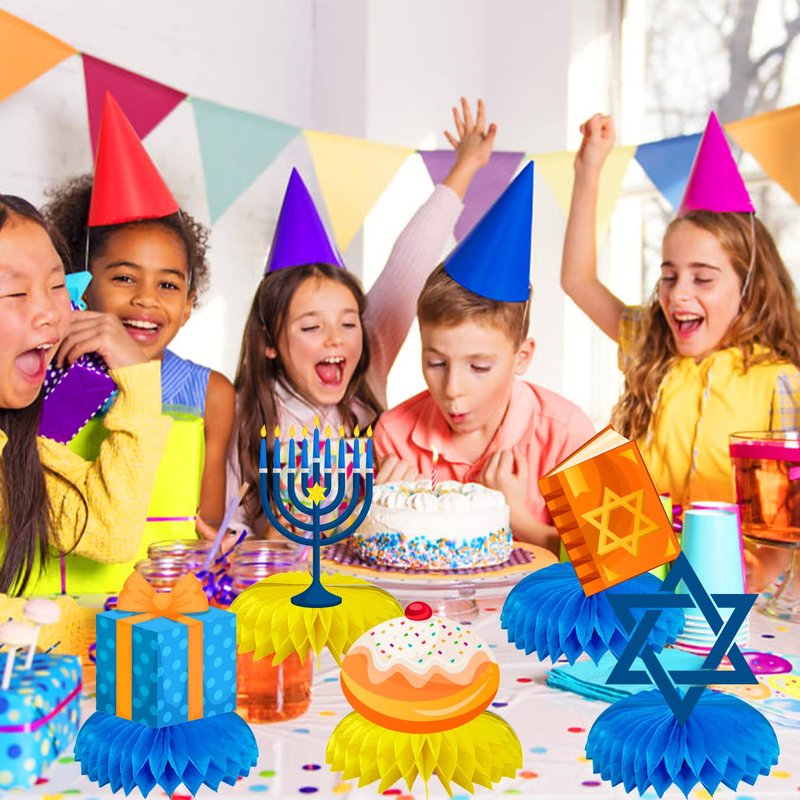 - Hanukkah Honeycomb Centerpieces Star Dreidel Menorah Table Toppers cutouts Chanukah Honeycomb baby shower birthday centerpieces Hanukkah Party Table Decorations supplies