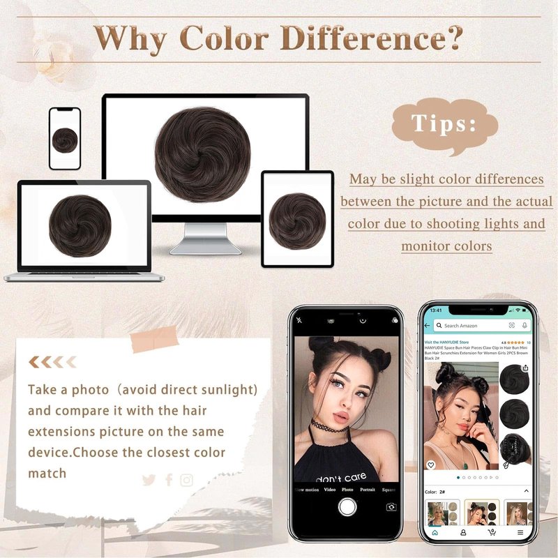Due to the different monitors, there will be a slight color difference in the hair bun. We try our best to make sure the pictures are the closest to the color of the hair bun.
