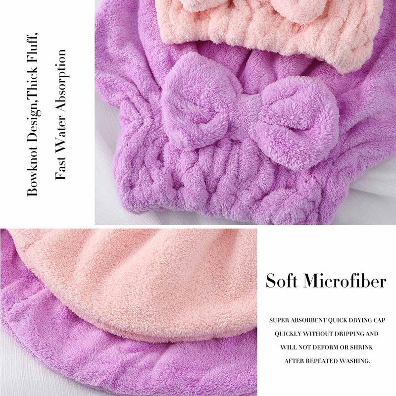 - Hair turbans for wet Hair have 2 colors in 1 set,enough quantity for daily use and replacement.Bowknot hair towel cap can machine washable and hand washable.