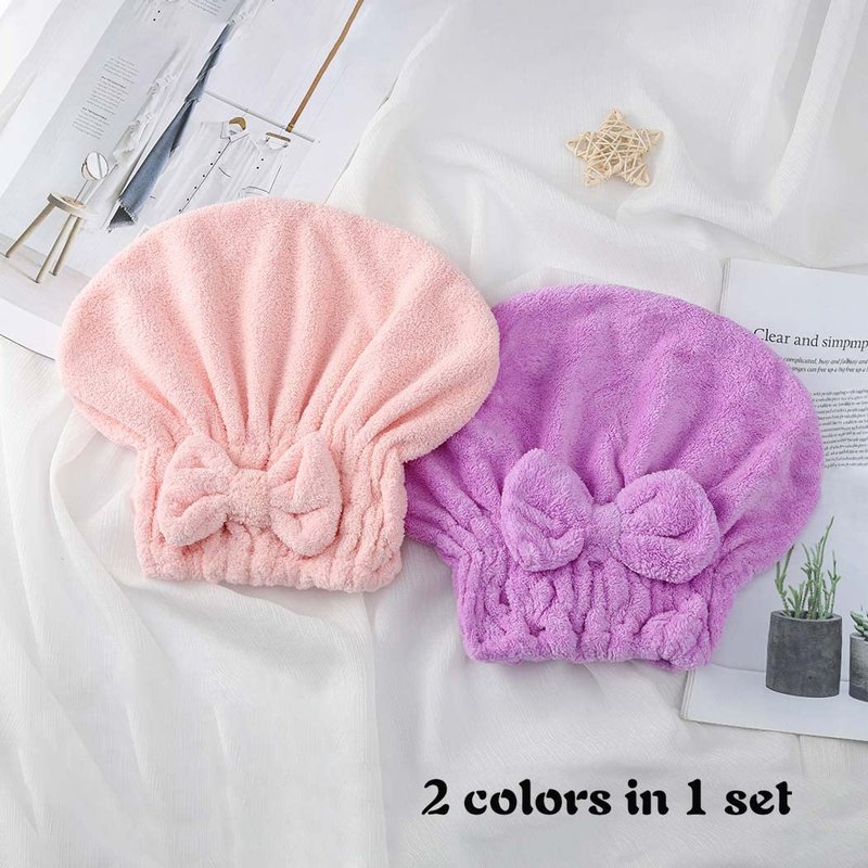 Haomye Bow Microfiber Hair Drying Towel Absorbent Hair Drying Cap Soft Hair Towel Cap Bowknot Drying Towel Cap Quick Dry Hair Turban Anti Frizz Shower Cap for Women and Girls 2Pcs
