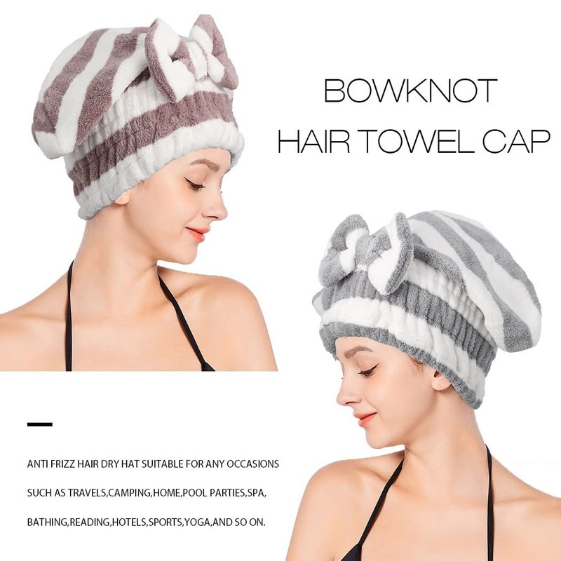 - Bow hair drying cap easy to use,you only need to do is wrap your hair in a dry hair cap and keep rubbing it.Your hair will dry quickly,prevent damage due to hair friction or hot air from electric hair dryer and reduce split ends,protect scalp.