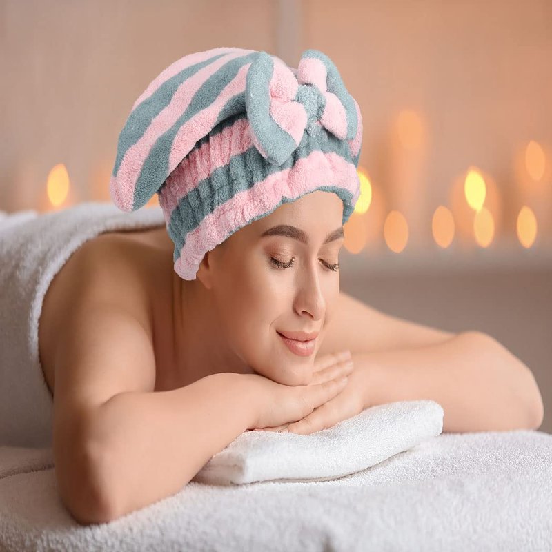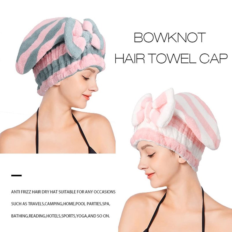 - Bow hair drying cap easy to use,you only need to do is wrap your hair in a dry hair cap and keep rubbing it.Your hair will dry quickly,prevent damage due to hair friction or hot air from electric hair dryer and reduce split ends,protect scalp.