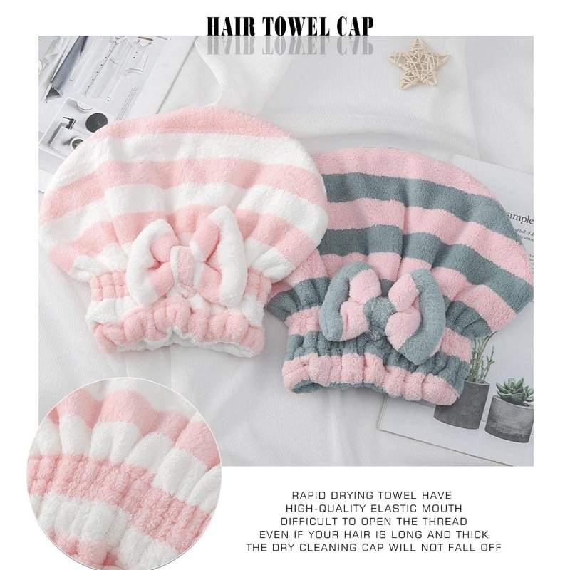 - Bowknot hair warp towel is approx 9.8*10.6 inch,it have clear stripe and bows,elastic band design makes it perfectly fit your head,will not let you feel too loose or too tight.