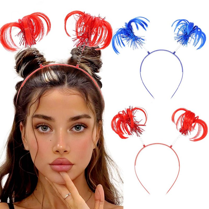Haomye Pom Pom Headbands Tinsel Ponytail Hairbands Cute Head Bopper Glitter Costume Hair Hoop for Birthday Christmas Party 2PCS (S-C)