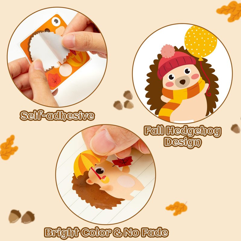 300pcs fall hedgehog stickers, 6 different designs