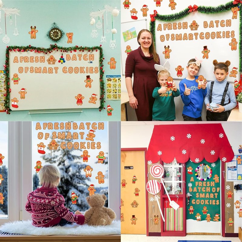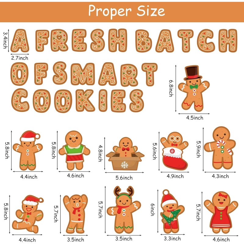 - Value Package: You will get 70pcs Christmas gingerbread bulletin board, including 40pcs gingerbread man cards in 20 different designs, 25pcs "A FRESH BATCH OF SMART COOKIES" letter cards and 5 sheet glue sheet. Enough quantities to meet your Christmas classroom decorating need.