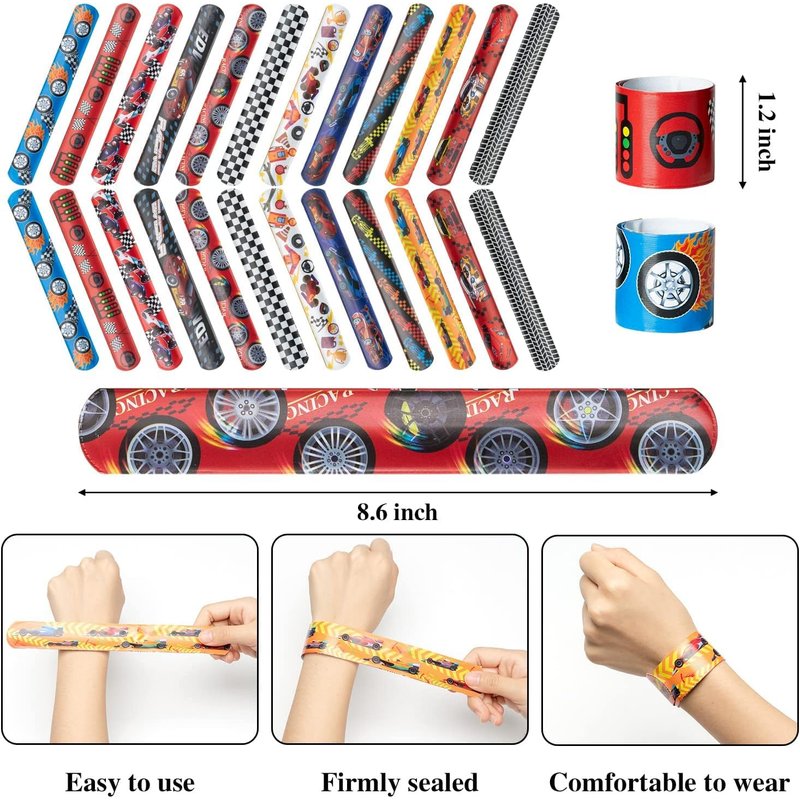 - Multi-purpose: The racing slap bracelet is not only a fashionable accessory, but also a fun toy. suitable for various parties, festivals and celebrations, such as boy’s birthdays, racing theme parties, car party, school prizes and so on, adding a bright and cheerful atmosphere to your party scene.