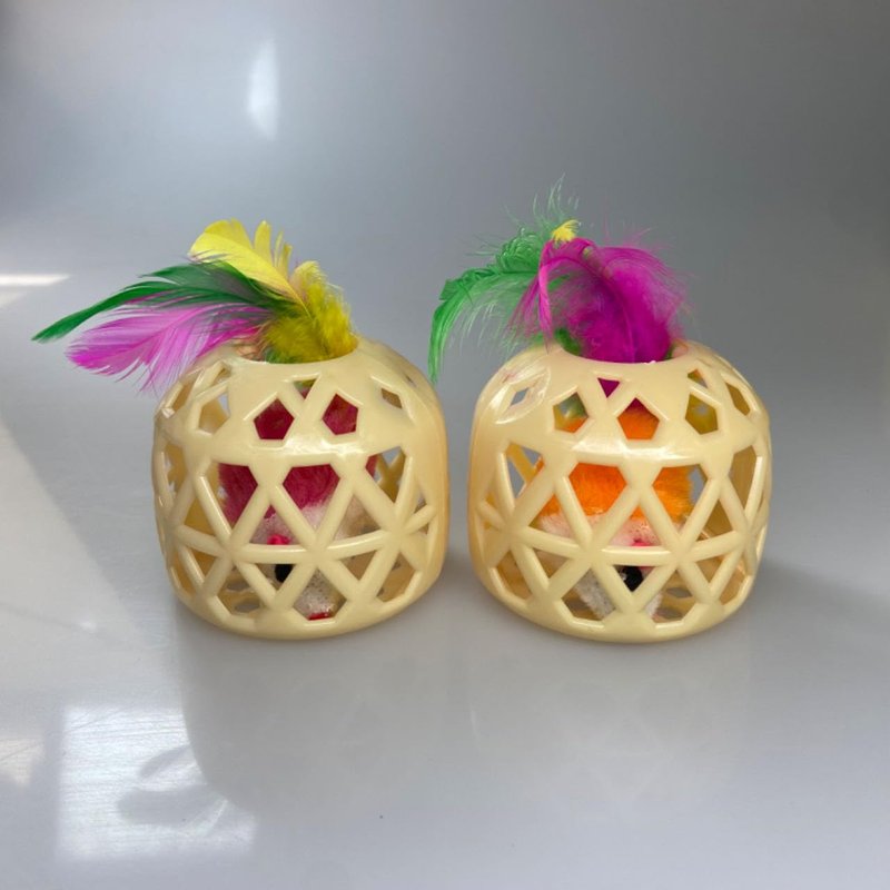 Interactive Cat Toy Balls with Feathered Mice - Colorful Rattling Plush Mouse in Plastic Cage - Fun and Engaging for Cats