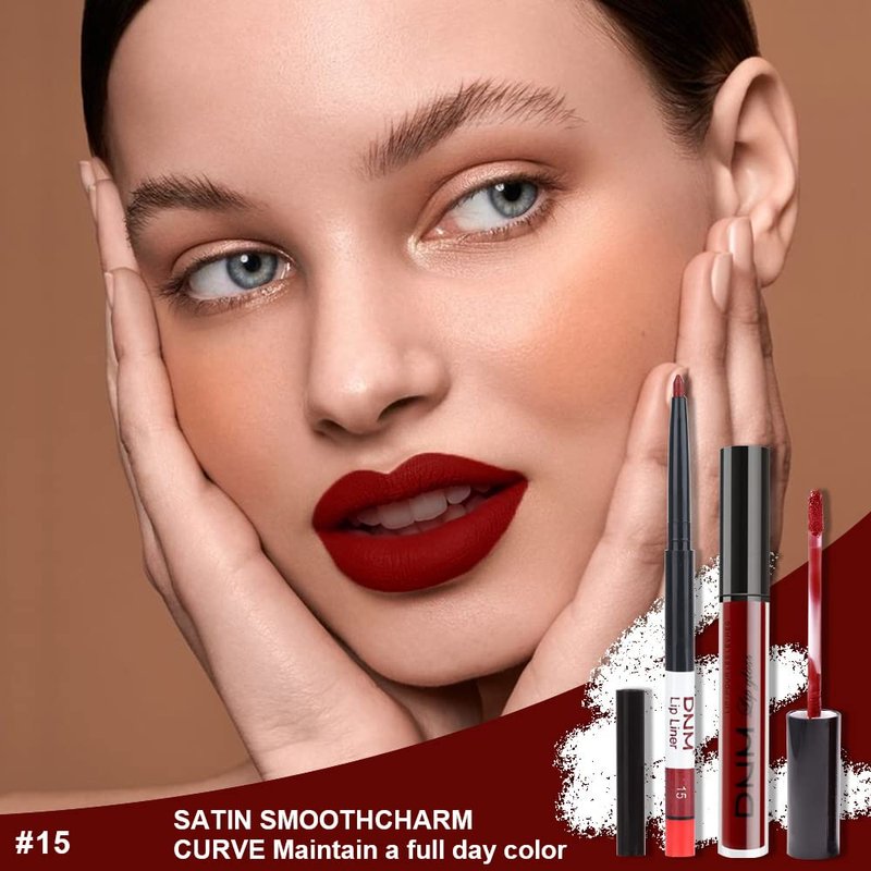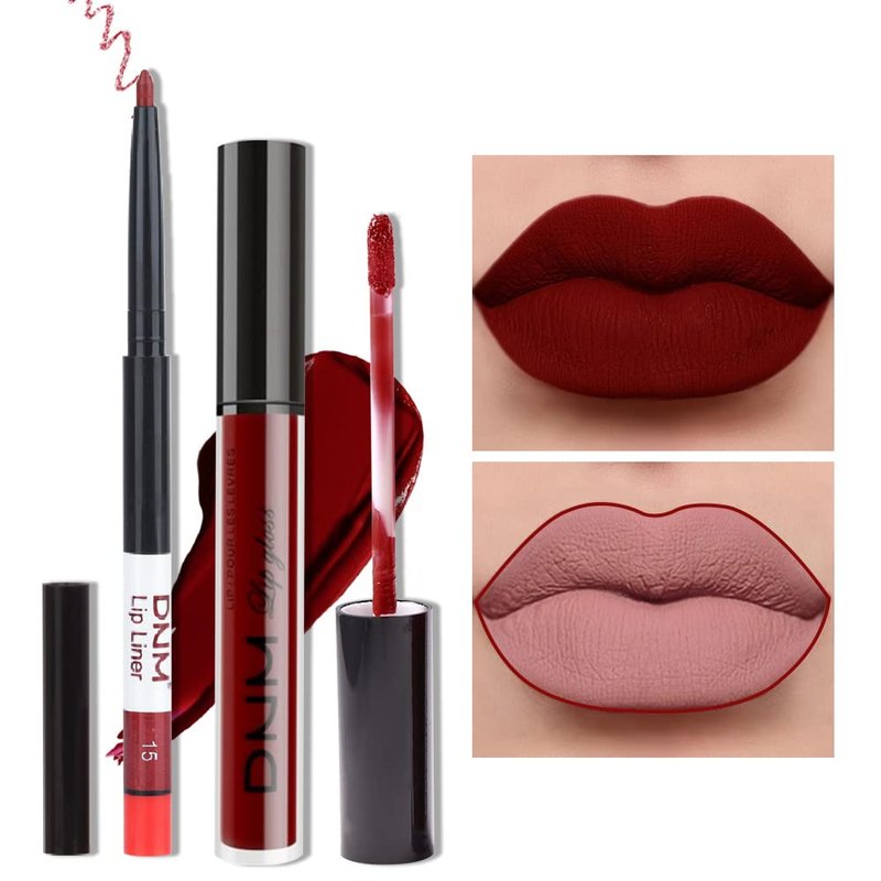 - 💎 2Pcs Matte Dark Red Lip Liner and Lipstick Makeup Set, Matte Liquid Lipstick 24H and with Lip Liner Set Kit Waterproof Long Lasting labiales mate 24 horas originales matte larga duracion 24 #15
